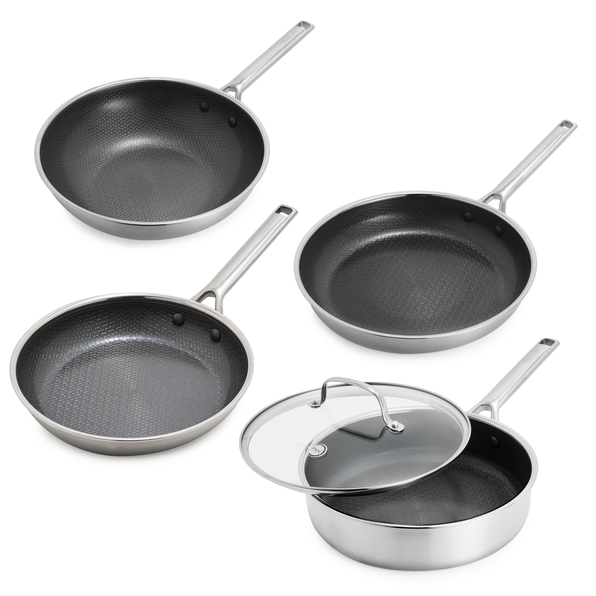 GreenPan APEX ist eine Neuerfindung des Hybrid-Kochgeschirrs. Wir kombinieren ein leistungsstarkes Ätzmuster aus Edelstahl mit unserer charakteristischen PFAS-freien Antihaftbeschichtung und fügen eine verstärkende Schicht für maximale Leistung hinzu. Unglaubliches Backen und müheloses Lösen. APEX besteht aus dreischichtigem Edelstahl und ist fünfmal widerstandsfähiger gegen Metallküchenutensilien, für alle Herdarten geeignet und ofenfest bis 220 Grad Celsius. Außerdem ist es leicht zu reinigen. Erleben Sie die Evolution des Hybrid-Kochgeschirrs mit GreenPan.