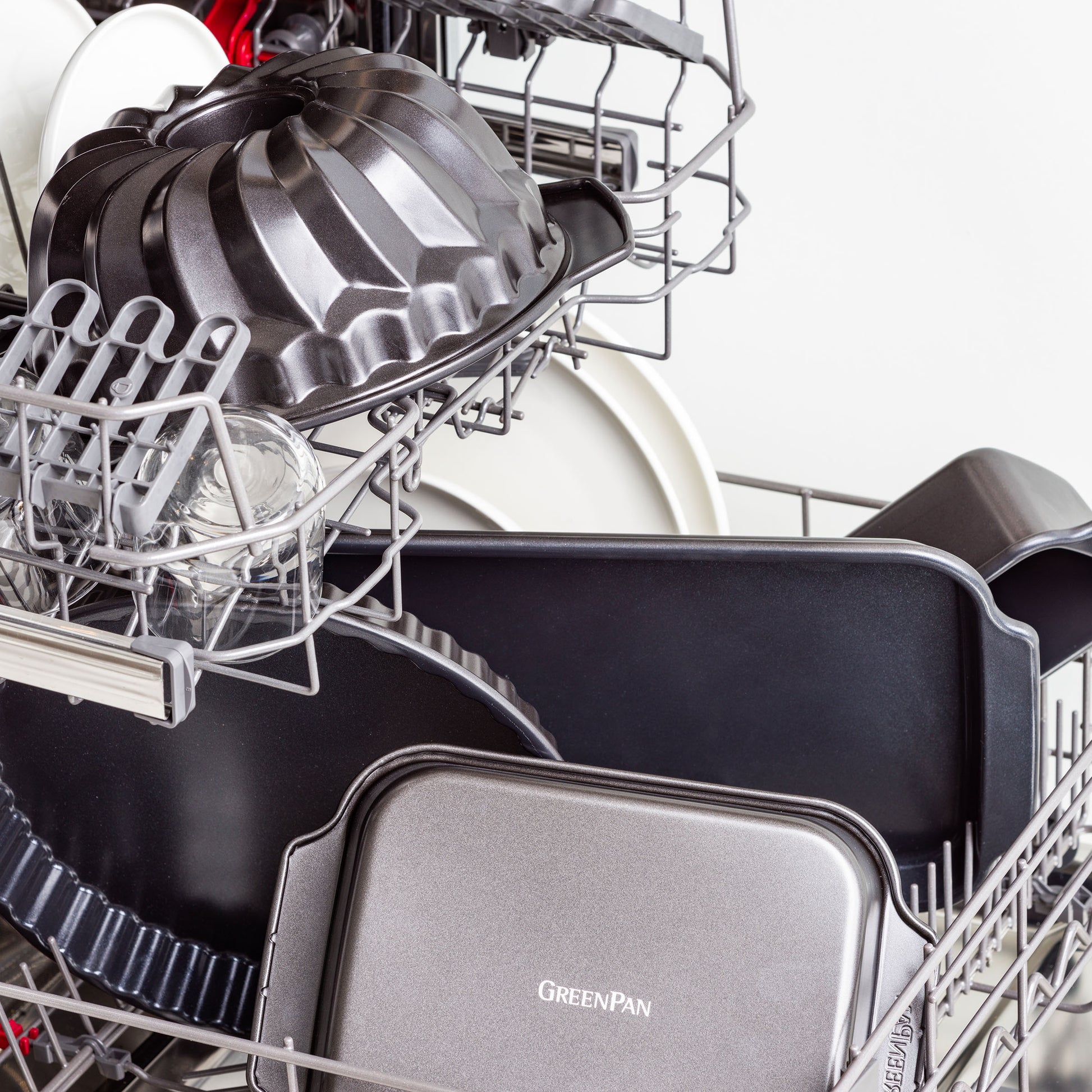 Mit seiner neuen Backform-Kollektion bringt GreenPan sein Know-how im Bereich PFAS-freier Antihaftbeschichtungen vom Herd in den Backofen! Die Kollektion besteht aus robustem, aluminisiertem Stahl, wodurch sie extrem widerstandsfähig ist. Sie ist kratz- und korrosionsbeständig und verzieht sich nicht. Die PFAS-freie Antihaftbeschichtung sorgt dafür, dass sich Speisen leicht lösen lassen, sodass deine köstlichen Kreationen beim Herausnehmen aus der Backform nicht beschädigt werden. Das Reinigen der Backformen ist ein Kinderspiel. Alle Backformen – mit Ausnahme der Springform und der Muffinform – sind zudem spülmaschinenfest. Das macht es noch einfacher!