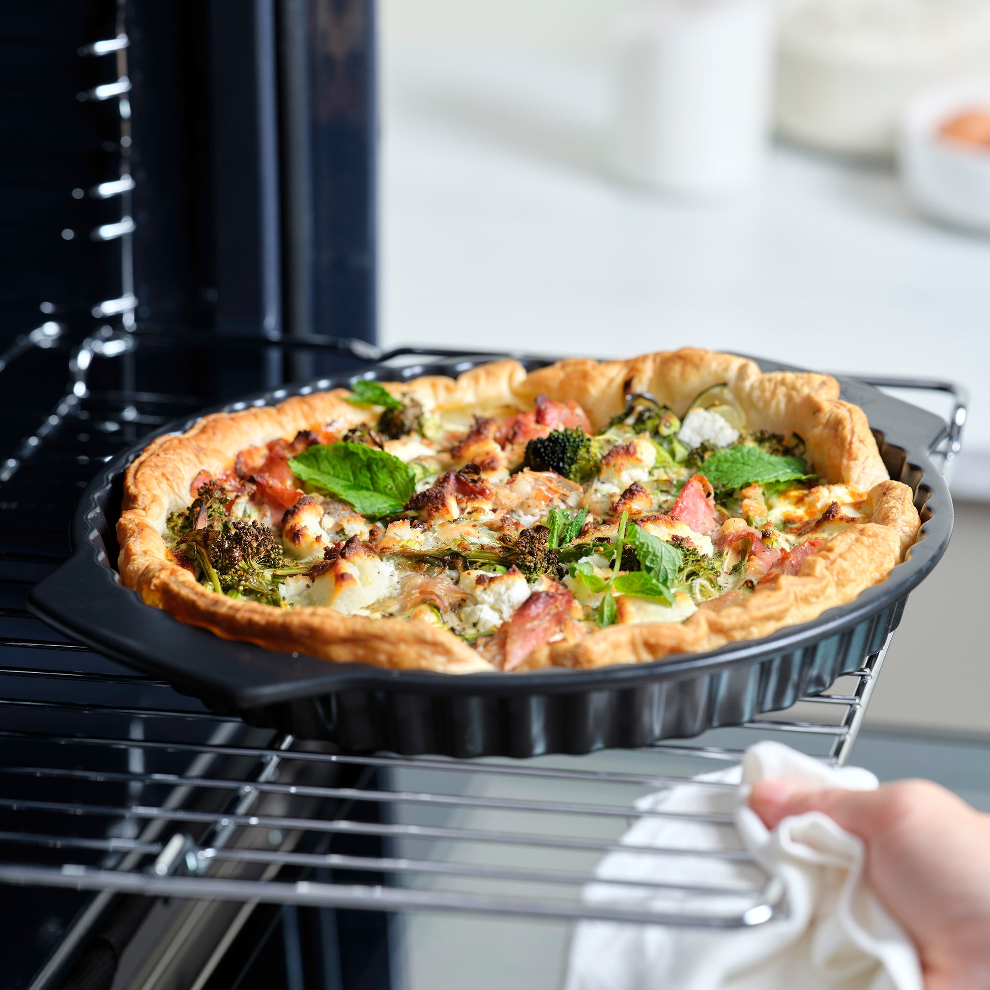 Mit seiner neuen Backform-Kollektion bringt GreenPan sein Know-how im Bereich PFAS-freier Antihaftbeschichtungen vom Herd in den Backofen! Die Kollektion besteht aus robustem, aluminisiertem Stahl, wodurch sie extrem widerstandsfähig ist. Sie ist kratz- und korrosionsbeständig und verzieht sich nicht. Die PFAS-freie Antihaftbeschichtung sorgt dafür, dass sich Speisen leicht lösen lassen, sodass deine köstlichen Kreationen beim Herausnehmen aus der Backform nicht beschädigt werden. Das Reinigen der Backformen ist ein Kinderspiel. Alle Backformen – mit Ausnahme der Springform und der Muffinform – sind zudem spülmaschinenfest. Das macht es noch einfacher!