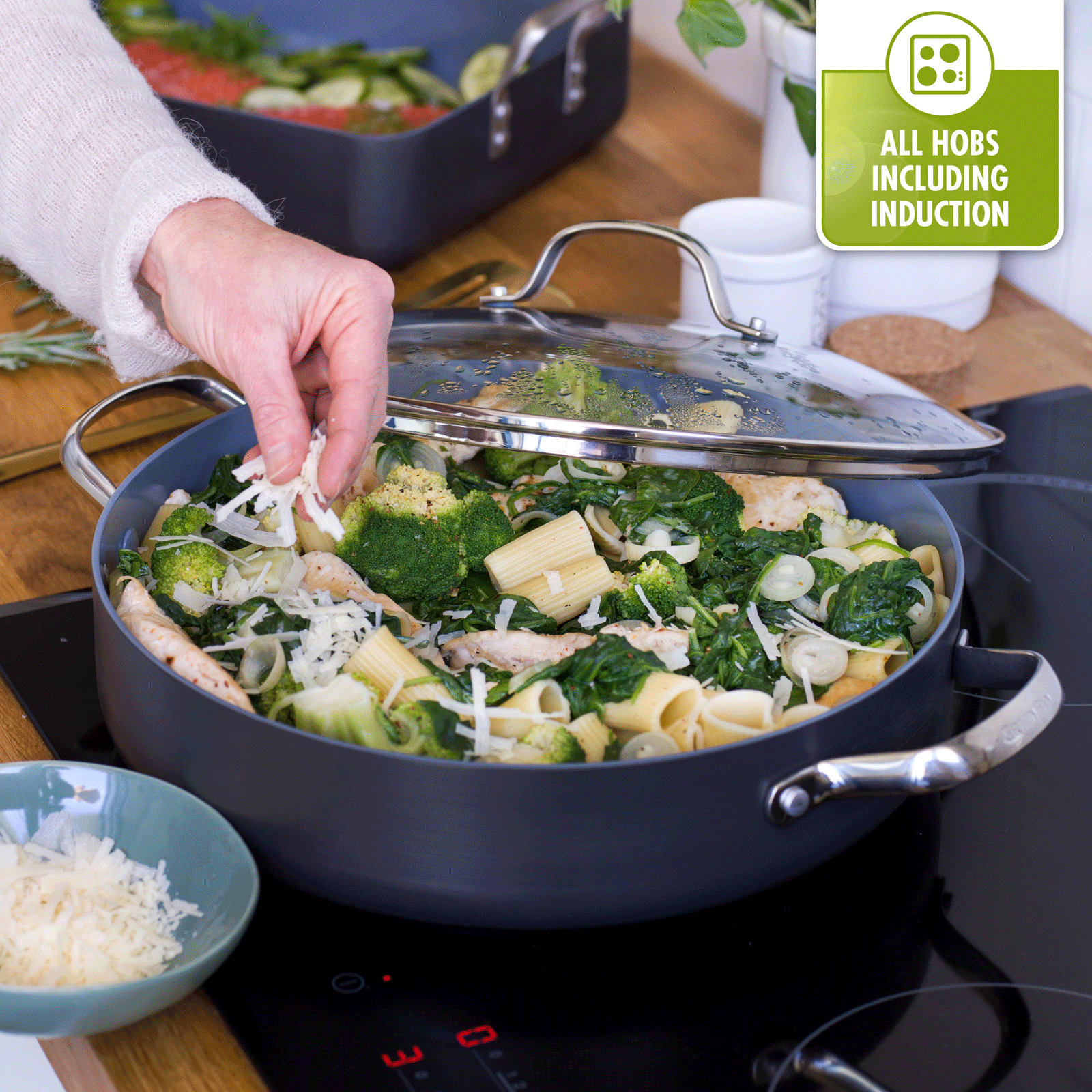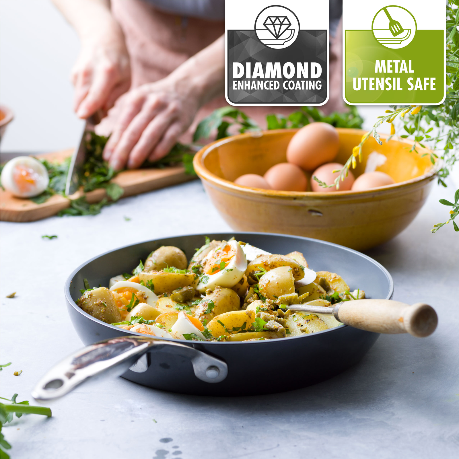 Sie suchen eine extrem langlebige Pfanne mit zeitlosem Design, die sich ideal für den täglichen Gebrauch eignet? Dann wird Ihnen unsere Venice Pro-Kollektion gefallen. Die Serie ist aus hochwertigem gehärtetem Aluminium gefertigt und mit unserer Magneto-Induktionstechnologie ausgestattet, sodass Sie sie auf allen Herdarten verwenden können.